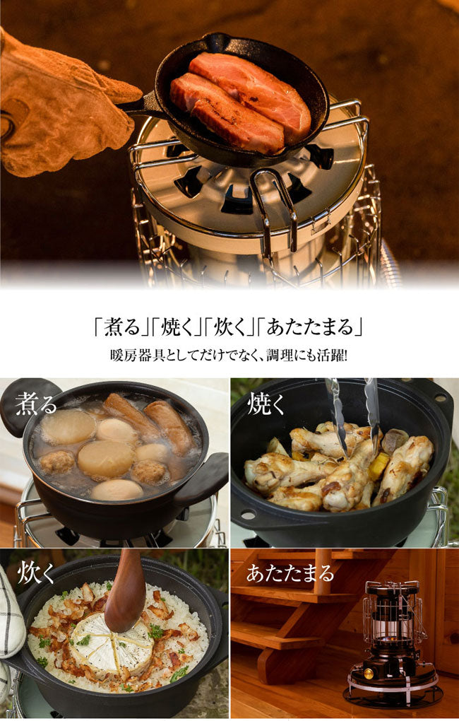 「永遠のスタンダード」と称され、90年以上愛され続けるブルーフレームヒーターの青い炎を囲み、「暖をとりながら料理もしたい」というお客様の声をかたちにするため開発しました。 【原産国】 |