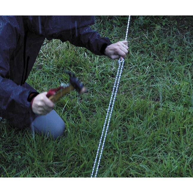 タープ、テントに最も多く採用している2穴アルミ製自在です。穴の縁で確実にロープに食いつきます。