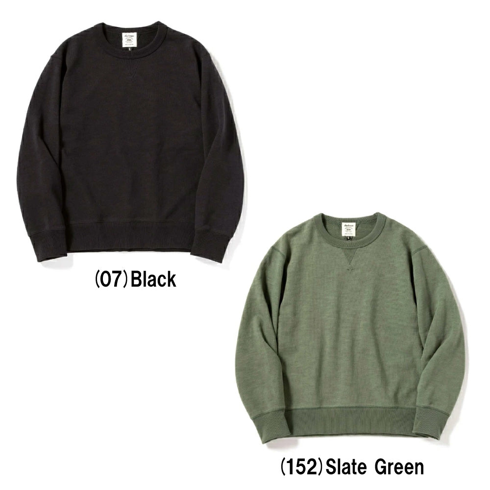 | 太番手の国産糸を使用した柔らかさと肉厚感があるスウェットクルーネックシャツ。 ソリッドカラーは肉厚感を重視、杢カラーは数色の撚糸を配合しバランスの良い杢感になるように工夫しました。 身巾と肩巾はゆったりとした設計で、肩傾斜を付けることで袖を下げた際の窮屈感を解消、二の腕から袖口にかけてゆとりをもたせました。 また肌面の縫製部分がごろつかないフラットシーマー縫製を採用、着用時の快適性を高めました。 首元のガセットは前後に配し着脱時の伸縮を補助、首フライスの伸びを防止します。 素材:綿100% |