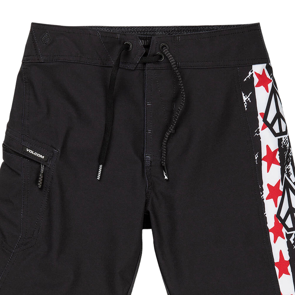 この愛国的なボードショーツは、シンチフライテクノロジーに加え、ウエストのドローコードとサイズのジップウェルトポケットが特徴です。