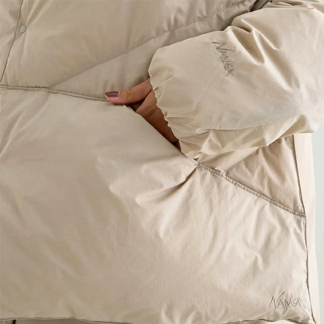 | ブランケット代わりにも使える大判シルエット ●大判なシルエットのダウンポンチョマフラー ●同素材のノーカラーダウンコートとセットアップで着用可能 ●大判サイズのため、車内や建物内ではブランケットとしても活躍 大判なシルエットのダウンポンチョマフラー。 同素材のNO COLLAR DOWN COAT/ノーカラーダウンコートとセットアップで着用可能。 トップに適度なボリューム感を与えて、コーディネートのアクセントに◎。 また、大きなカンガルーポケットは、ハンドウォーマーとしても活躍してくれること間違いなし。 表生地には、やわらかくソフトな質感のナイロン素材を使っています。 ナイロン特有の硬さはなく、しなやかで柔らかな印象。 まるでコットン素材のような肌当たりの良さを感じていただけます。 フロントはスナップボタンになっており着脱も容易。 温度調整にも優れています。 また、大判サイズのため、車内や建物内ではブランケットとしても活用していただける便利な仕様。 【素材】 生地:ナイロン100% ダウン:Re:Cycle Down(650FP) 【ダウン量】 60g |