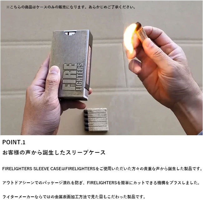| ついに誕生! FIRELIGHTERS専用のスリーブケース 【重量】 166g 【素材】 ステンレス 【内容】 FIRELIGHTERS SLEEVE CASE×1個 ※こちらの商品はケースのみの販売になります。あらかじめご了承ください。 |