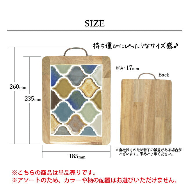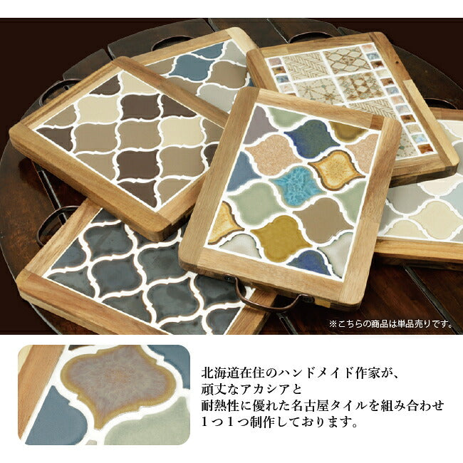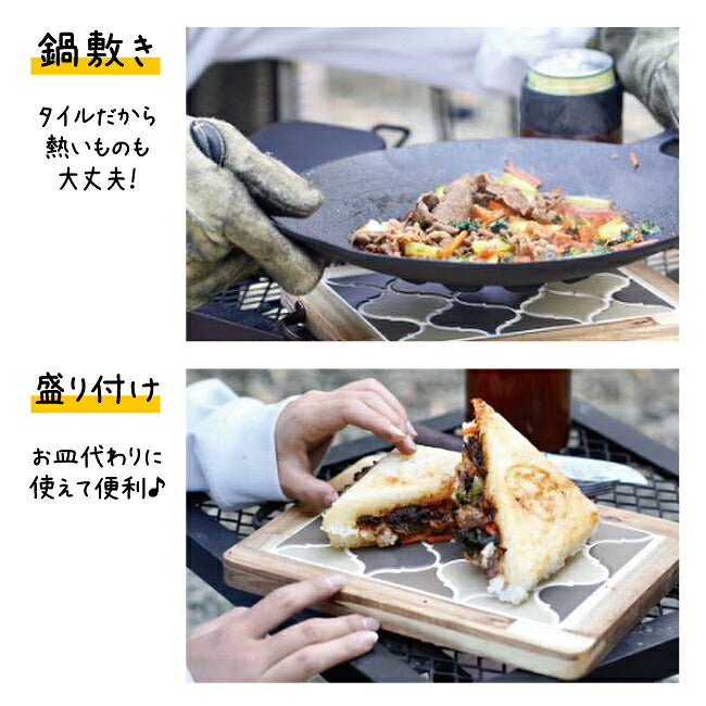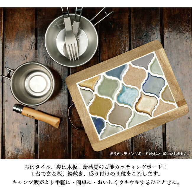 1台でまな板、鍋敷き、盛り付けの3役をこなす新感覚の万能カッティングボード! キャンプ飯がより手軽に・簡単に・おいしくウキウキするひとときに。 北海道在住のハンドメイド作家が、頑丈なアカシアと耐熱性に優れた名古屋タイルを組み合わせ、1つ1つ制作しております。 【素材】 木枠:アカシア集成材 タイル:名古屋タイル |