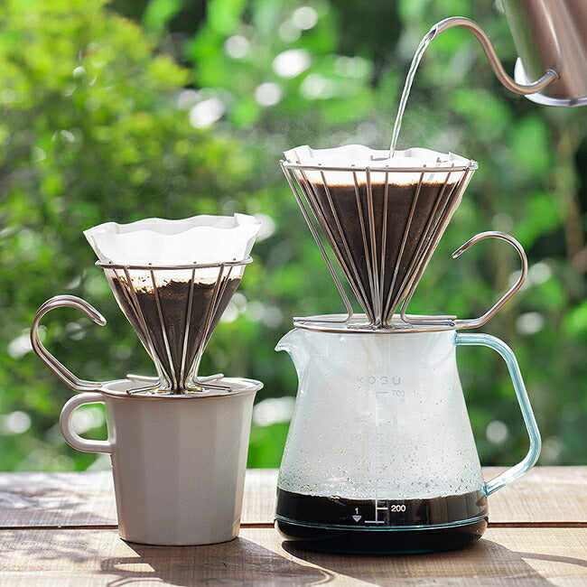 ガラスのように透き通った樹脂製コーヒーサーバー。 耐久性に優れる「トライタン」を使用しており、軽量で落としても割れにくいのが特長です。 電子レンジ・食洗機にも使用できます。 注いだ量が分かりやすい目盛り付きで、注ぎ口は液だれしにくい形状ですのでストレスフリーです。 【材質】 本体:飽和ポリエステル樹脂(耐熱110℃・耐冷-20℃) フタ:ポリプロピレン(耐熱140℃・耐冷-20℃) 【容量】 満水850ml、適正700ml 【重量】 200g 【対応熱源】 電子レンジ ※樹脂成型のため取っ手側に薄いキズやくもり、注ぎ口下に線があります。 ※ガス火・IH電磁調理器にはご使用いただけません。 |