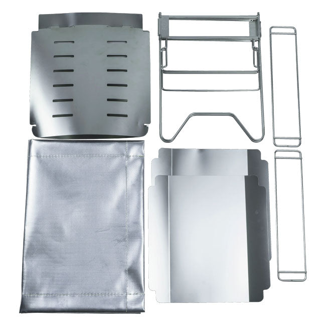 自然を傷付けない焚き火台をコンセプトに、ソロ〜グループまで誰もが焚き火や料理を最大限に楽しめる機能性を有しています。 【焚き火も料理も楽しめるサイズ】 収納時はコンパクトですが、火床の長さは約51cmあり、キャンプ場で売られているような薪(30cm〜40cm程度)であればはみ出る事はありません。 広さを活かして右側で調理、左側は保温スペースにするなど使い分けることができます。 付属の五徳(2本)は2段階の高さに設置することができるため、さらに細かく強火と弱火の調整が可能です。 【コンパクトで組み立てが簡単】 フレームはA4サイズに折り畳まれたフレームを左右に広げるだけなので、面倒な組み立てが一切不要になる他、脚が繋がっている分安定性も抜群です。 折り畳めば厚みは2cmほどまで薄くなり、重さも他のパーツ含め約1.2kgまで軽量化。 付属の収納袋は余裕のある大きさになっているため出し入れが簡単で、遮熱シートや焚き火シート(95×60cm)、ファイヤースターターなどの焚き火関連グッズが1つにまとめられます。 【3本軸の頑丈さと固定力】 火床を支えるフレームが両サイドだけでなく真ん中にもあることで頑丈さが大幅にUPしており、ある程度強い力で押しても崩れることはありません。 また、火床も6か所でしっかり固定されているため、持ち上げても振っても崩れることなく扱うことができます。 【重量】 約1300g 【材質】 本体:ステンレス製 収納袋:600Dポリエステル 【付属品】 フレーム、火床、遮熱板2枚、五徳2本、収納袋、遮熱シート |