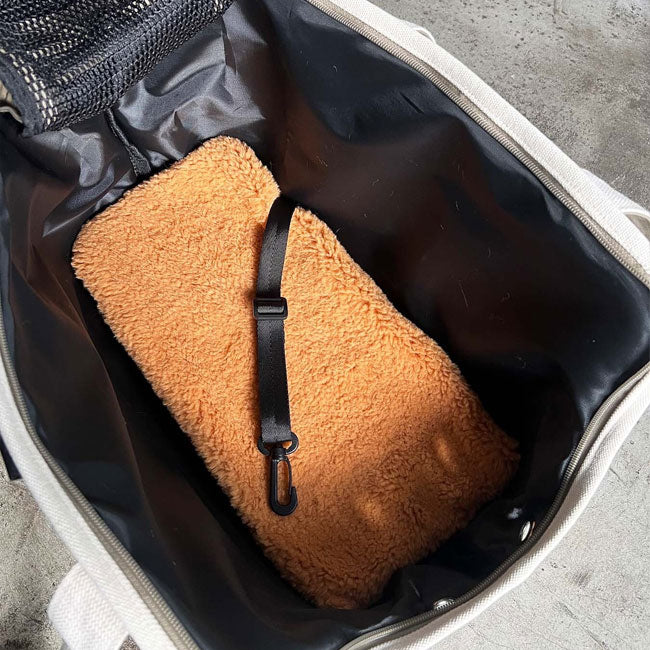 ●フラップ2重構造 本製品はフラップが2重になっています。 1枚目はコットン素材のフラップ。 完全に外が見えない状態になります。 2枚目はメッシュ素材のフラップ。 メッシュを閉じると飛び出す危険性は少ないので交通機関を利用する方にもお勧めいたします。 ●フラップ収納 1枚目のフラップはくるくると巻いてポケットにそのまま入れて下さい。 2枚目のメッシュフラップはくるくると巻いて内側から出ているテープで外側のスナップで留める事ができます。 ●フロントポケット オープンポケットなのでさっと取り出せるおやつなどを収納するのに便利です。 ●背面ポケット 上下が貫通した帯状のジッパーポケットがついています。 スーツケースの装着可能。 車に乗せる時はシートベルトで安全に固定する事もできます。 さらにジッパーポケットになっているので大事な小物や、カワイイ瞬間を逃さないようにスマホを収納しても◎ ●サイドの空気穴 高さが低い方向(顔が向いている方向)に大きめの空気穴を付けています。 ●底板 バッグの形が曲がらず、底の形を保ちます。 底板はしっかりとした補強剤が入っており、ペットの足腰を守りたるみの心配がなく安定感を持って使用できます。 ●底板カバー(ふわふわ素材) 板サイズよりも長めにお作りしております。 底の設置する時に長い部分をくるくるとしてクッションのようにもでき、必要の無い場合は底に折り込むとフラットになります。 トートからお顔や腕を出すとリラックスする子が多いようです。 その場合にはカバーを伸ばしてご使用するとジッパーや鞄の端が当たる事がなく快適に過ごす事ができます。 ●ハンドル(持ち手) ハンドルクッションにより肩への負担を軽減。 肩掛けができるように長めの仕様になっています。 ●内装の安全リード ペットにとってのシートベルトです。 安全リードを首輪やハーネスにつなげてご利用ください。 ●ハンドルのナスカン金具 お手持ちのポーチなどをひっかけるのに最適です。 こちらはナスカンになっていますのでヒキテやループなどがあるポーチなら簡単に装着する事ができます。 【適応体重】 〜6kg 【素材】 外装・ハンドル:コットン 内装・底板カバー:ポリエステル 【重量】 880g(底板込み) 【素材・色味について】 ●裁断によって模様の配置が写真と異なる商品がございます。 ●合皮皮革等の生地は経年劣化します。 ●過剰な摩擦、湿った状態でご使用されますと他の衣類への色移り、色落ちする場合があります。 |
