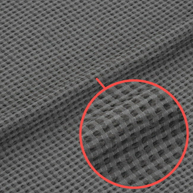 鹿の子状のポリエステル100%素材で吸水速乾性・UVカット(UPF 40+)の機能を兼ね備えています。