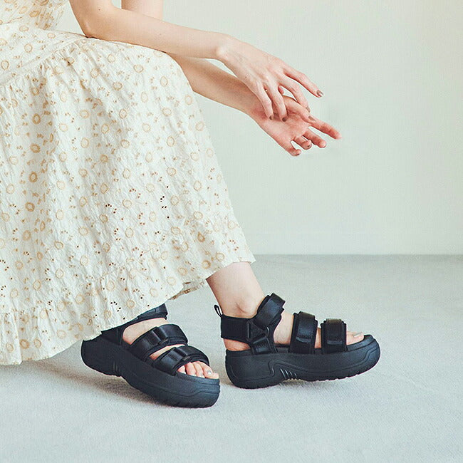 SHAKA(シャカ)の代名詞的スポーツサンダルの「NEO BUNGY」に、創業時から変わらないSHAKA(シャカ)を象徴するオリジナルパターンのアウトソールのDNAを継承しつつさらに進化した快適さとスタイルを与える新ソール「EVOL SOLE」の厚底チャンキーソールタイプを搭載した注目のレディース厚底サンダルです。 軽量EVA素材とロッカー構造の新ソールで、歩きやすさとトレンド感を兼ね備えています。 大人気の定番サンダルを踏襲した着用者の足にフィット出来るアッパーデザインと、全体の色味に合わせた型押しラバーのブランドロゴラベルがシンプルかつモダンな印象に仕上がっています。 カジュアルからシックなコーディネートまで幅広いシーンで活躍してくれて厚底デザインが品よくスタイルを格上げしてくれます。 【デザインと機能性】 ・ミニマルでシンプルなデザイン アッパーには光沢を抑えたプレーンな素材が使用されており、洗練されたミニマルなデザインに仕上がっています。 同色の型押しラバーロゴが施され、全体のテープと一体化しているため、さりげないアクセントになっており、どんなスタイルにも自然に馴染みます。 癖のないデザインはカジュアルからキレイめスタイルまで幅広いコーディネートに対応できるため、日常使いから旅行やアウトドアシーンまで、シチュエーションを選ばずに活躍してくれます。 ・ORIGINAL SOLEのDNAを引き継ぎつつ進化した「EVOL SOLE」 2025年春夏から新たに採用されたEVOLソールはSHAKA(シャカ)のオリジナルソールのDNAを受け継ぎ、EVA素材を使用することで軽量化とクッション性を強化した新しいソールです。 さらにランニングシューズなどにも採用されるロッカー構造を用いることで長時間の歩行にも対応できる軽量かつ快適な歩きやすさと履き心地を実現しました。 さらに定番レディースモデルでも長年人気の厚底ソールを踏襲した丸みを帯びた厚めのフォルムで見た目のかわいらしさとスタイルアップも両立しています。 ・調整可能なベルクロストラップで快適なフィット感 3本のストラップにはベルクロが採用されており、自分の足にぴったりとフィットするように調整可能です。 しっかりホールドされるので、足のズレを防ぎ、安定した履き心地を提供します。 また、脱ぎ履きも簡単で、日常使いにも便利です。 春や秋口にはお気に入りの靴下で合わせたソックスコーデで街や旅行に・・・ 夏には素足でアウトドアやフェス・・・ 普段履きのデイリーユースから、一人でもみんなでも楽しい旅行、サンダルシーズンならではのアクティブシーン。 シンプルなデザインと機能性を併せ持ち、ライフスタイルに合わせたシーンとスタイリングで、この春夏の皆様のお供として活躍してくれるスポーツサンダルとなっています。 【MATERIAL】 甲:ナイロン 底:合成底 |