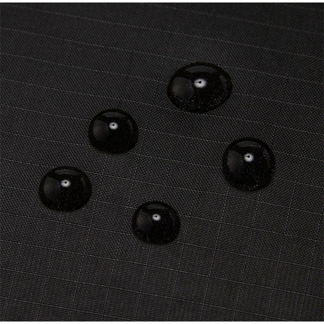 表地は強度がある40デニールのリップストップナイロンにはっ水加工を施し、パックに干渉する肩部分はナイロン素材で補強しています。