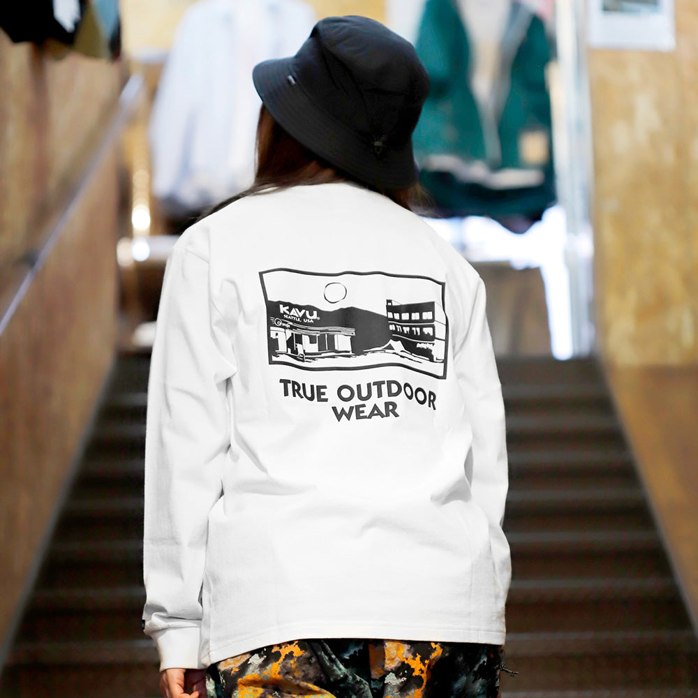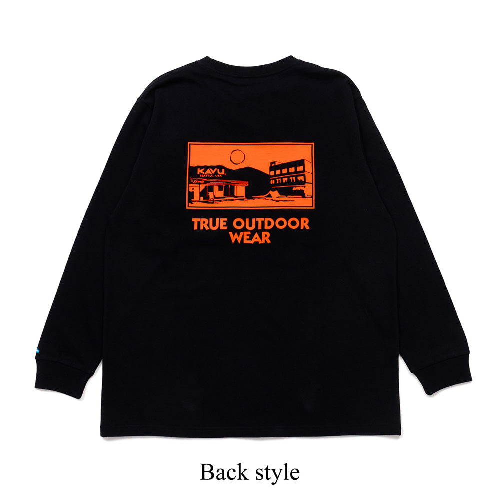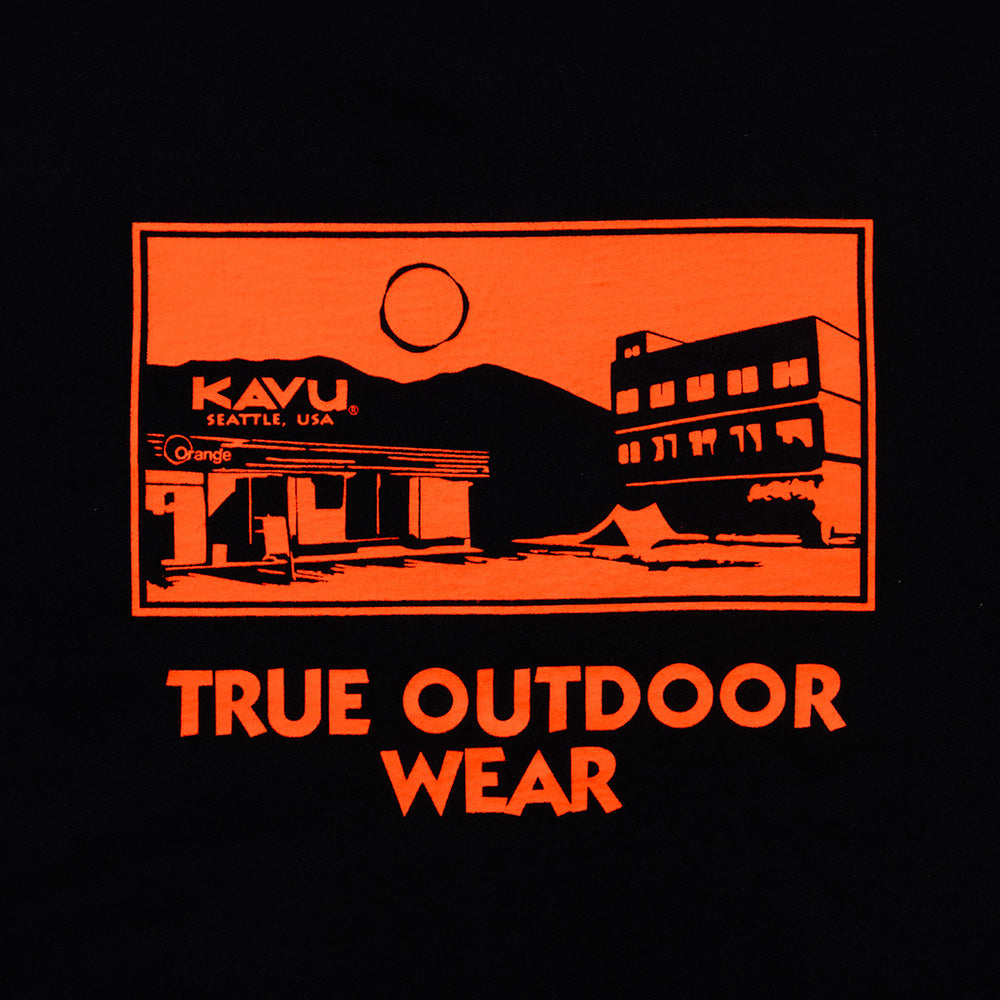 KAVUの定番トゥルーロゴ TEEをベースに、Orange発祥の地かつらぎ店の景色をバックプリントに。