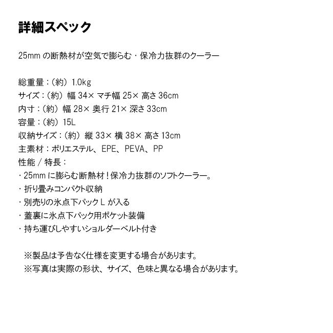 ・25mmに膨らむ断熱材!保冷力抜群のソフトクーラー。