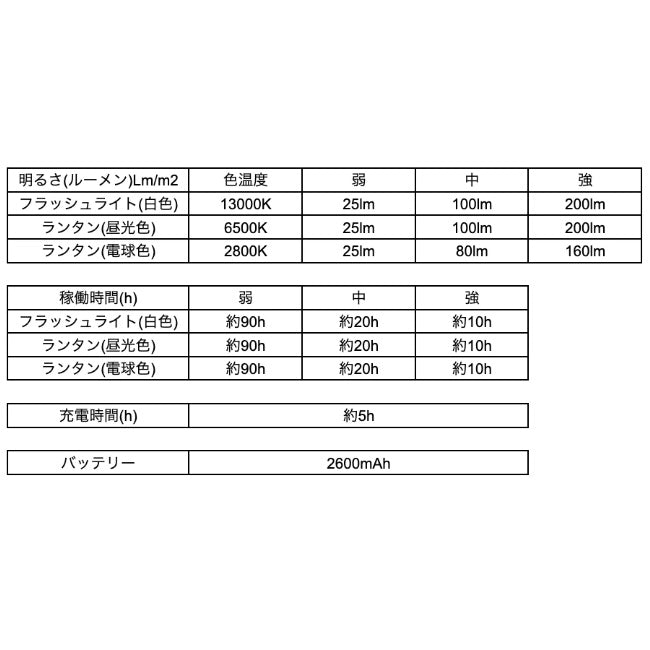 MINIMALightの良いところはそのままで、さらに機能がアップしリニューアルしました! ランタン、フラッシュライトともに2段階だった調光を3段階にリニューアル。 ランタンは、暖色/温白色の色温度を選択することができます。 弱→中→強の順で点灯するようになり、起動時の眩しさを軽減しました。 新しく追加された「弱」モードでは最長90時間の点灯が可能に。 MINIMALight2.0は、トーチとランタンが一体となったコンパクトLEDライトです。 トーチ部分はスライドして照射範囲を絞り、約100mを照らすことが可能です。 カスタム性も高く、MINIMALight専用のGLOBEやシェードと合わせるとまた違った雰囲気のライトに様変わりします。 ※MINIMALightとサイズは一緒なので、既存のシェード等カスタマイズアイテムはそのまま使用可能です。 2,600mAhのバッテリー搭載で非常用充電池として使用可能。 USBケーブル接続部などにシリコンキャップが付いているので、IP44の防水機能も備えています。 【重量】 約110g 【素材】 アルミニウム(アルマイト加工) 【内臓バッテリー】 2600m Ah リチウムイオン 【色温度】 ハンディ:白色 ランタン:暖色/温白色 【照射距離】 100m(ハンディ) 【防塵防水等級】 IP44 【付属品】 USBケーブル ユーザーマニュアル 届出事業者名:株式会社TRYL PSマークの種類:PSE |