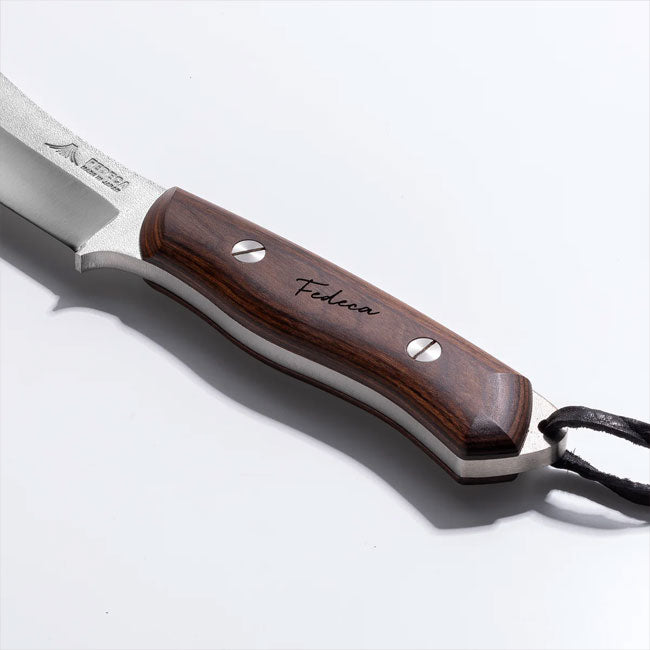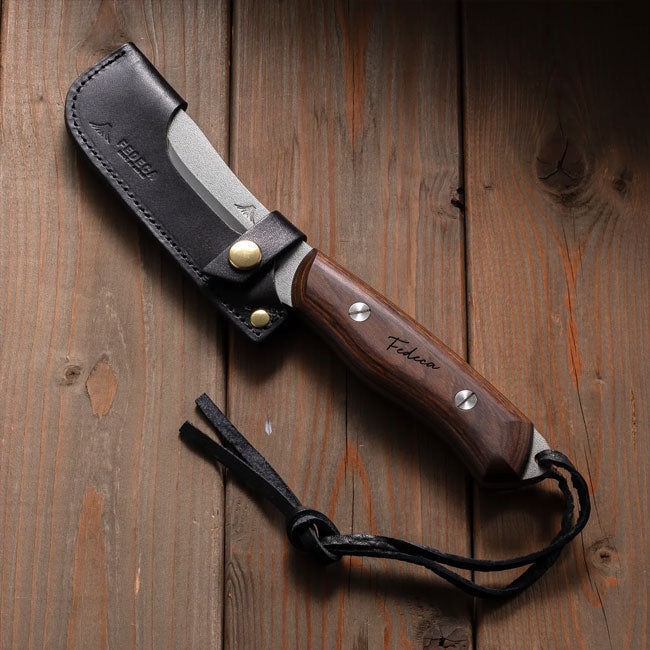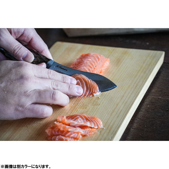 「料理が楽しくなるようなブッシュクラフトナイフが欲しい!」 そんなお客様の声から、このナイフは誕生しました。 料理も焚火もナイフ一本で完結! 手元においておきたい、初心者から上級者まで満足いただけるアウトドアで頼れる一本です。 また、専用のレザーシースやストラップの革紐も標準装備。 素材にもこだわり、姫路レザーを使用。 使い込むほどに経年変化をお楽しみいただけます。 特長1:料理がしやすい絶妙なカーブ形状 ・ハンドルと刃に角度を持たせた設計で、包丁のような押し切りが可能 ・5.6mmの極厚刃で、魚も骨ごと一刀両断! ・トマトや刺身、豆腐のような繊細な食材も滑らかにカット ・自重を活かして、薬味を潰したり、チョッピングでミンチ作りも 特長2:タフに叩ける、鋭く切れる「FEDECAコンベックスグラインド」 ・鉈や斧と同じ構造コンベックスグラインドで、薪割りに耐える強度 ・シャープな刃付けでフェザースティックもスムーズに ・バトニングからファイヤースターターでの着火までこなせる万能さ 特長3:錆びに強く、切れ味に優れたVG10ステンレス ・福井県・武生特殊鋼材製の高級刃物鋼 VG10を使用 ・鋭い切れ味×メンテナンス性×錆びにくさを高バランスで実現 ・堅い広葉樹もバトニングできる、耐久性が最も高いフルタング構造を採用。 ・5.6mmの刃厚により、薪が裂けるように簡単に割れます。 【重量】 約225g 【素材】 鋼材:VG10 ハンドル材:積層強化木/積層材(マルチカラー) グラインド:コンベックスグラインド シースナイフ:フルタング構造 ※ナイフ刃物類の販売に関して※ ●ナイフ・刃物類は18歳未満の方へは販売しておりません。 ●刃渡り60mm以上のナイフを、正当な理由なく携帯することは法律によって禁止されています。 ●販売は登山・キャンプなど正当な使用目的を有した方のみとさせていただきます。 (銃砲刀剣類所持等取締法第22条) |