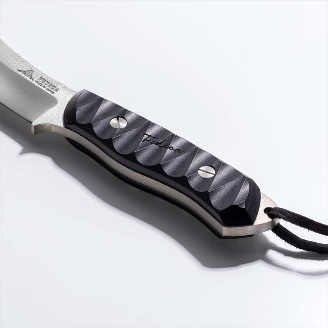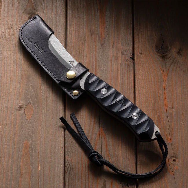 「料理が楽しくなるようなブッシュクラフトナイフが欲しい!」 そんなお客様の声から、このナイフは誕生しました。 料理も焚火もナイフ一本で完結! 手元においておきたい、初心者から上級者まで満足いただけるアウトドアで頼れる一本です。 また、専用のレザーシースやストラップの革紐も標準装備。 素材にもこだわり、姫路レザーを使用。 使い込むほどに経年変化をお楽しみいただけます。 特長1:料理がしやすい絶妙なカーブ形状 ・ハンドルと刃に角度を持たせた設計で、包丁のような押し切りが可能 ・5.6mmの極厚刃で、魚も骨ごと一刀両断! ・トマトや刺身、豆腐のような繊細な食材も滑らかにカット ・自重を活かして、薬味を潰したり、チョッピングでミンチ作りも 特長2:タフに叩ける、鋭く切れる「FEDECAコンベックスグラインド」 ・鉈や斧と同じ構造コンベックスグラインドで、薪割りに耐える強度 ・シャープな刃付けでフェザースティックもスムーズに ・バトニングからファイヤースターターでの着火までこなせる万能さ 特長3:錆びに強く、切れ味に優れたVG10ステンレス ・福井県・武生特殊鋼材製の高級刃物鋼 VG10を使用 ・鋭い切れ味×メンテナンス性×錆びにくさを高バランスで実現 ・堅い広葉樹もバトニングできる、耐久性が最も高いフルタング構造を採用。 ・5.6mmの刃厚により、薪が裂けるように簡単に割れます。 【重量】 約225g 【素材】 鋼材:VG10 ハンドル材:積層強化木/積層材(マルチカラー) グラインド:コンベックスグラインド シースナイフ:フルタング構造 ※ナイフ刃物類の販売に関して※ ●ナイフ・刃物類は18歳未満の方へは販売しておりません。 ●刃渡り60mm以上のナイフを、正当な理由なく携帯することは法律によって禁止されています。 ●販売は登山・キャンプなど正当な使用目的を有した方のみとさせていただきます。 (銃砲刀剣類所持等取締法第22条) |