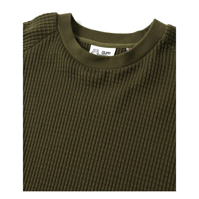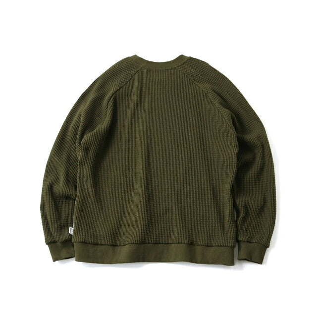 ザックリワッフル冬を越す ヘビーワッフルは、スウェット感覚で使える生地の厚さ。 ボコボコとした凹凸感のある肌触りが特徴です。 機能的にもワッフル編みなので、空気の層を閉じ込め保温力が長続きする天然のヒートインナー。 秋口は一枚ニット代わりに、冬には本領発揮のインナーとして。 シンプルに違いを出すのにも最適アイテムです。 【素材】 本体:コットン100% リブ:コットン95%、ポリウレタン5% |