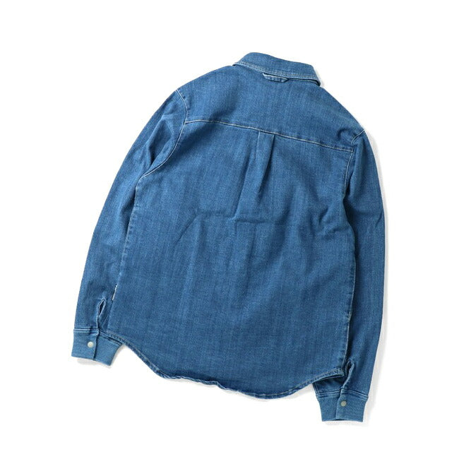 デニム素材/カツラギ素材のスナップボタンシャツ。