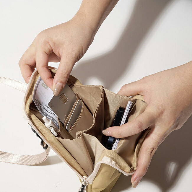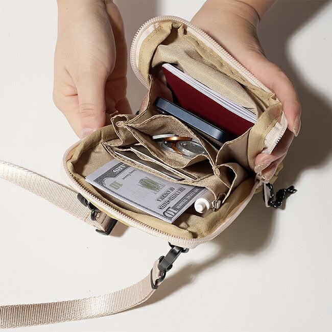 旅行、お財布、携帯をキーワードにすべての用途を1つに盛り込んだ縦型の軽量ポーチ。
