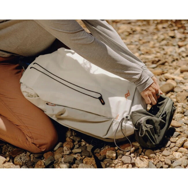 アウトドアバックパック25Lは、軽量でより機能をシンプルにした、フレームレスのバックパックです。 快適な背負い心地を提供するショルダーストラップ、バッグ容量を20Lから25Lへ拡張できるロールトップ構造や豊富なポケットなど、コンパクトながらも高い利便性を誇ります。 別売りのカメラキューブやパッキングキューブ、各種ポーチ類などの「パッキングツール」を活用することで、衣類や食料、キャンプ道具からスポーツ用品、撮影機材まで、あらゆる荷物を収納できます。 バッグ外側には、軽さと耐久性のバランスに優れ、耐候性のある100%リサイクル素材「Terra Shell(テラシェル)210D リップストップナイロン」を採用。 前面と底部にはTPUコーティングを施した生地を使用し、防水性、耐摩耗性を強化しています。 また、バッグ背面とショルダーストラップには、通気性のあるナイロンメッシュを使用しています。 【容量】 20〜25L 【重量】 1.15kg 【同梱物】 コードフックギアループ×2 コードフックエクスターナルキャリーコード×2 スターナムストラップ×2 キーテザー×1 |