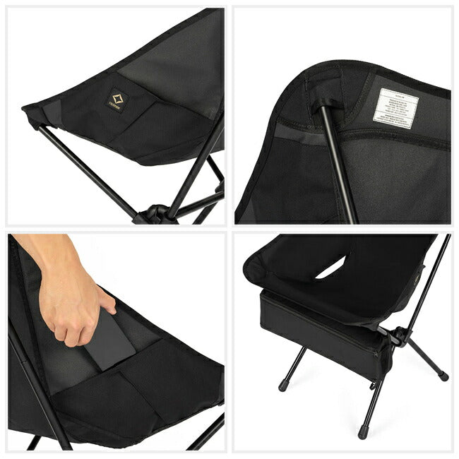 リラックスチェアでありながらもタクティカルラインならではの無骨さもあり、必要最低限に削ぎ落とされた装飾とシンプルなデザインが特徴で、収納力も抜群。