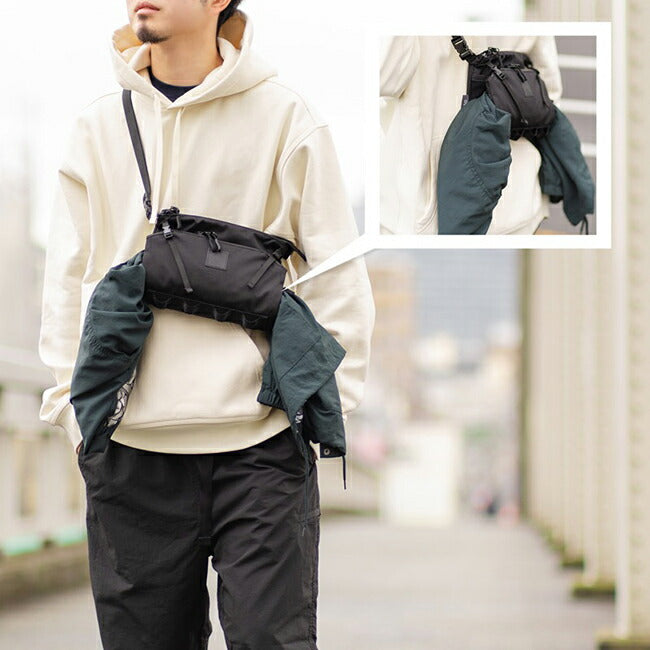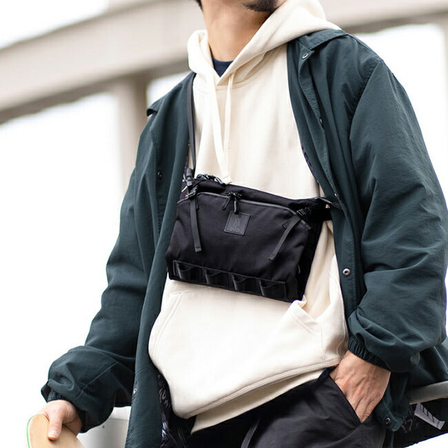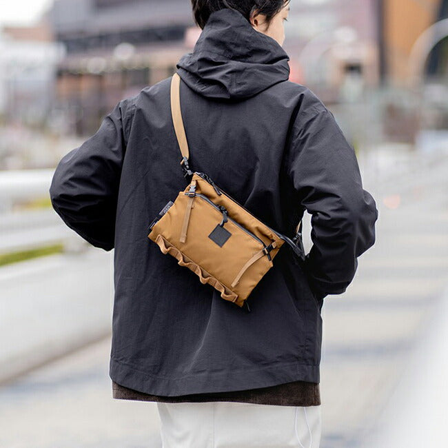 薄マチですっきり使える、アタッチメント機能付きのサコッシュバッグ。