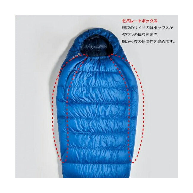特に胸から腰にかけたセパレートボックスは、ダウンの偏りを防ぎつつ暖かさをキープします。