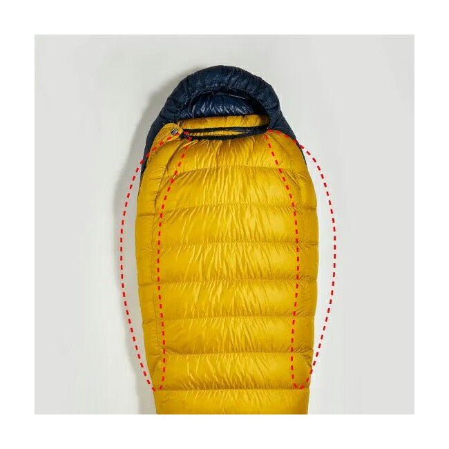 撥水ダウンを480g封入、首から胸にかけて縦に配置したセパレートボックスにより保温性を高めています。