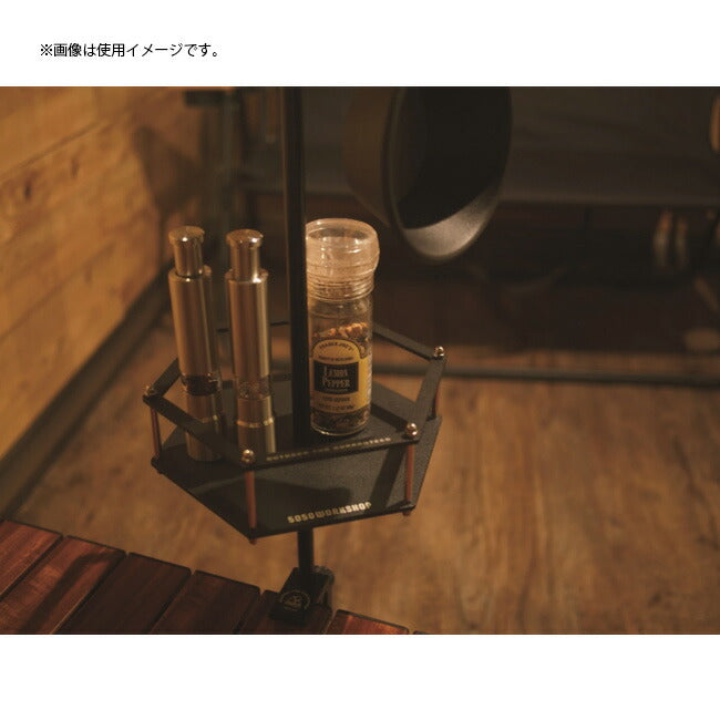 2WAYSTANDをより便利に拡張できるSTAND PLATE。 スタンドのジョイント部分にプレートを挟み、小物を置くことが可能。 上下2段にセット可能で上段はシェラカップやちょっとした小物を吊るせるスリットが入っています。 下段には落下防止の枠をセットし、安心して小物を置くことが出来ます。 ACCESSORIES ・下段プレート ・下段枠 ・ネジ(6か所分) ・上段プレート ・収納バッグ SPECS ・重量:約500g ・アルミニウム2mm |