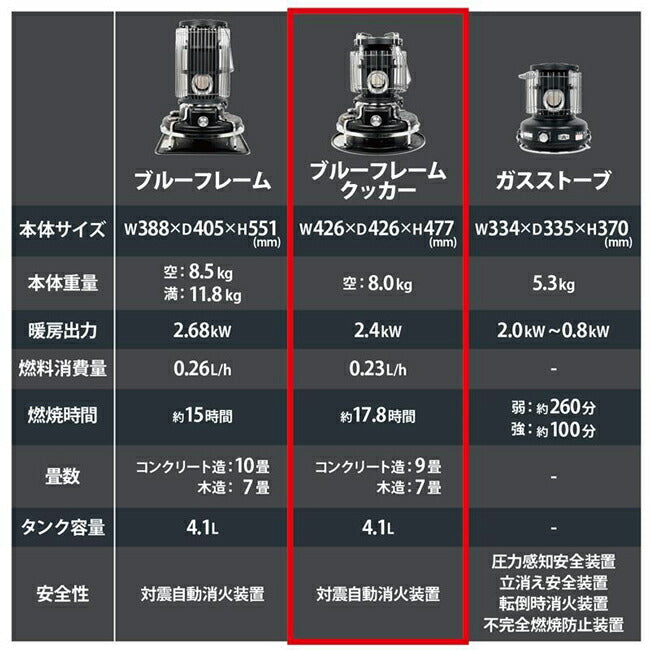 五徳が追加されたにも関わらず、ブルーフレームヒーターよりコンパクトで取り回しが良い事も魅力。