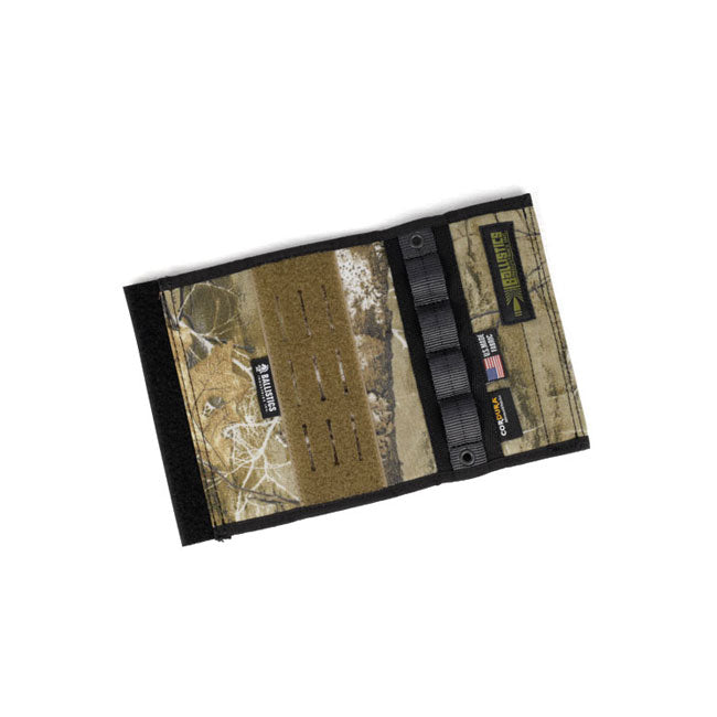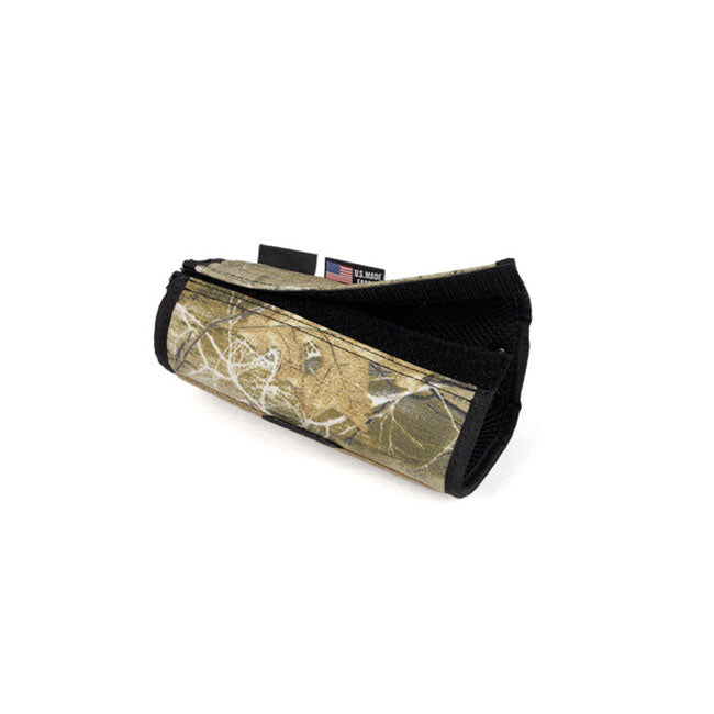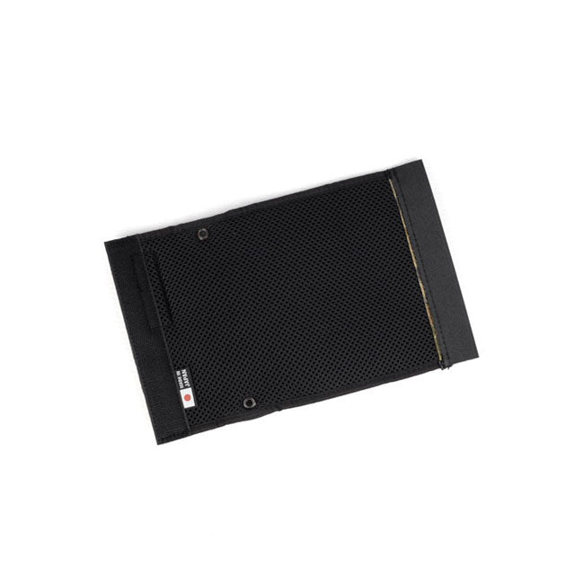 数年前よりご好評をいただいております「マルチカバー」の別デザイン版になります。 ベルクロを目いっぱい拡大した上でデザインとしてレーザーカットしたパルスホール(ポーチ等を取り付ける際にベルトを通す穴)を開けてアクセントとしています。 細かい部分ですが、バンジーコードの山を5個から4個に減らし、両脇にグロメットを打っています。 又、ベルクロを端から端まで拡大した事によりもっと細いパイプ状の物への巻き付けも可能となりました。 |