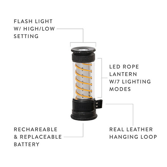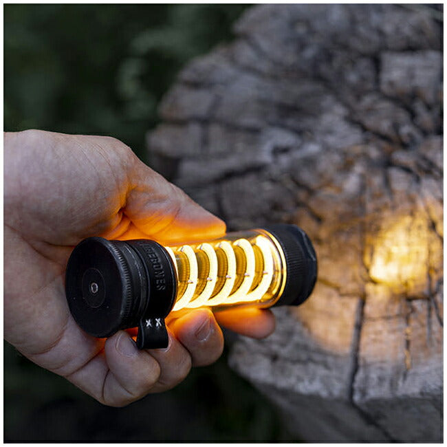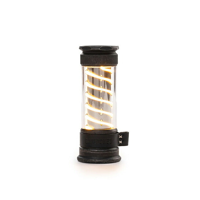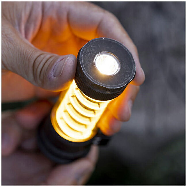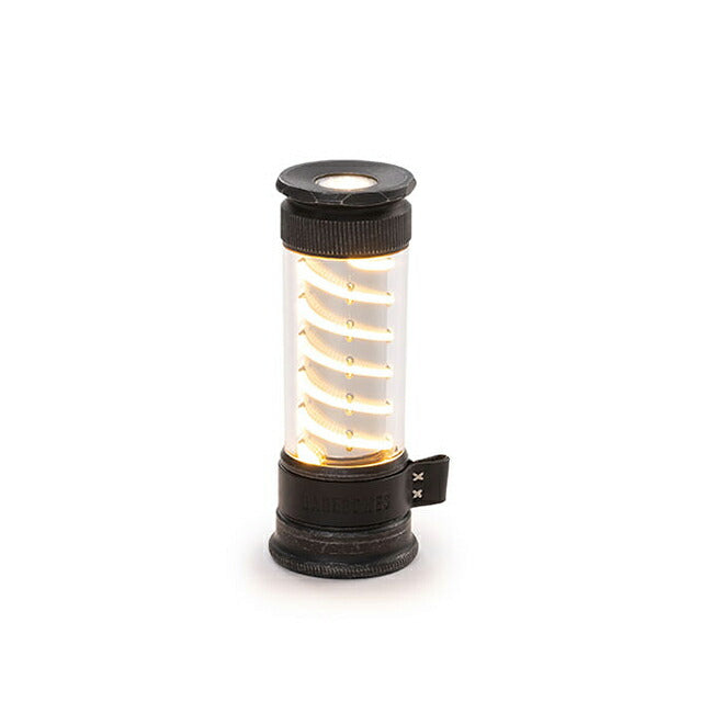 ロープ状のLEDを採用したスティック状の小型ライトです。 ベース部分に磁石が内蔵されより使い易くなりました。 ハンドライト、ランタンとして使用できるユニークなランタンで、リチウムバッテリーを内蔵しており、繰り返し使用可能です。 タンブルスチールバージョンは、ブラックカラーにダメージ加工が施され武骨な質感です。 【注意】 ご購入後、バッテリーを入れる際には、説明書に沿って、フラッシュライトレンズエンドキャップ側を回してバッテリーを挿入してください。 その際、締めすぎないようにしてください。 また、ライトセレクターノブ(スイッチ)側を間違って強く回したり、分解をしますと、ライトの破損に繋がりますので、ご注意ください。 【ライトスティックモード】 [明るさ] Lowパワー:9-12lm、Hiパワー:90-120lm [連続点灯時間] Lowパワー:20時間、Hiパワー:7時間 [発光色] 暖色 2100-2400K 【フラッシュライトモード】 [明るさ] Lowパワー:11-15lm、Hiパワー:115-145lm [連続点灯時間] Lowパワー:60-80時間、Hiパワー:6-8時間 [発光色] 暖色 2800-3300K 【バッテリ−】 LI-ION 18650 | 2200mAh 3.7V 8.14Wh 【充電方式】 USB-C充電 【充電時間】 4-5時間 【素材】 スチール、ポリカーボネート、レザー 【重量】 220g |