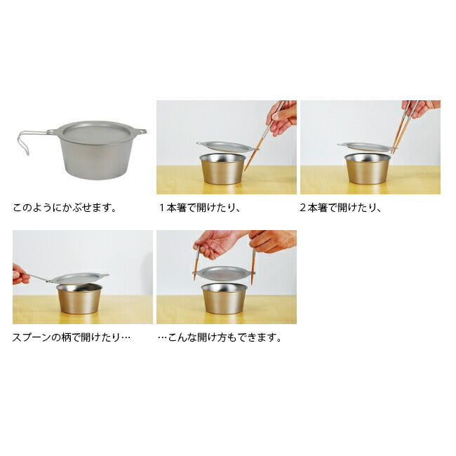 シェラカップ300,420,480,600兼用の「フタ」です。 皿やまな板としても使用でき、とても便利。 チタン製です。 材質:チタニウム |