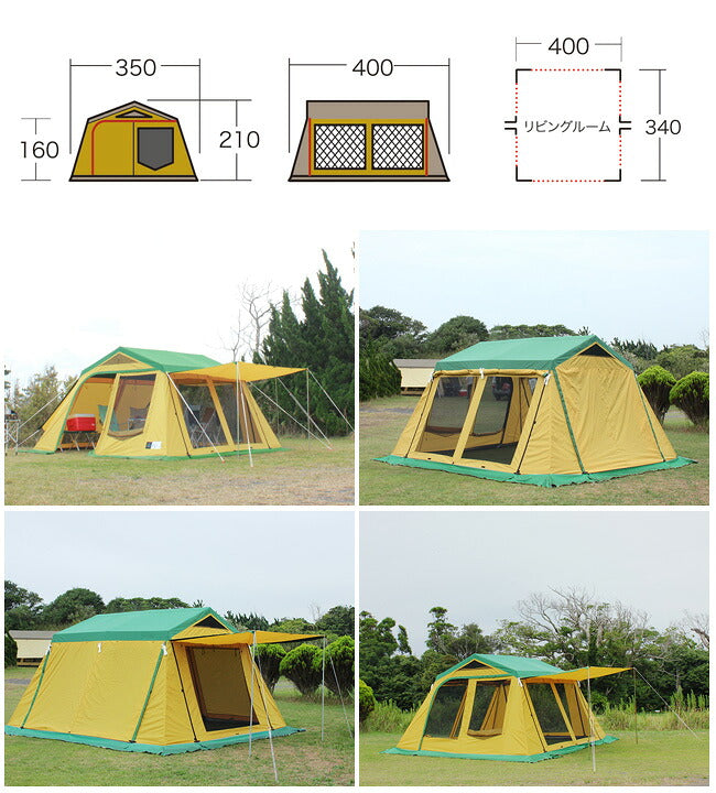 素材は、強度と耐候性に優れたポリエステル250dを採用。4面の大型メッシュと張り出し機能を装備しています。 適度なサイズと空間が快適なキャンプライフを約束します。 ■素材 フライ:ポリエステル250d(耐水圧1,500mm) ポール:スチールφ22mm |