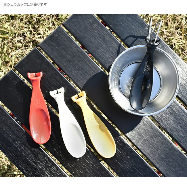 シェラカップのハンドルに取り付けて携帯できる、シェラカップ専用スプーンです。 耐熱性のある樹脂を使用しているので、調理にも使え、熱の伝わりも低く、口あたりもなめらかです。 底面が水平でスタンディングできるため衛生的です。 ワイヤーハンドルタイプのシェラカップに取り付けが可能です。(ワイヤー幅16mm程度) 材質(品質):ポリブチレンテレフタレート(耐熱温度180度) |