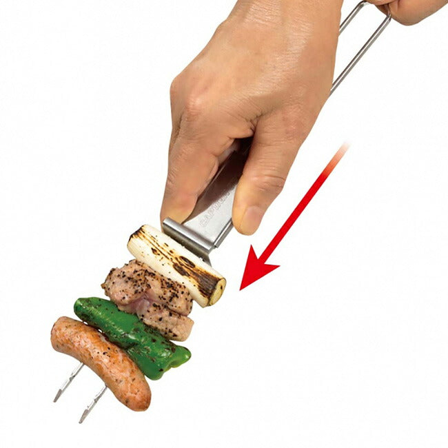 肉や食材が回らずに焼けます。便利な串抜き金具付。 串抜きは取り外して洗えます。 材質(品質):ステンレス鋼 |