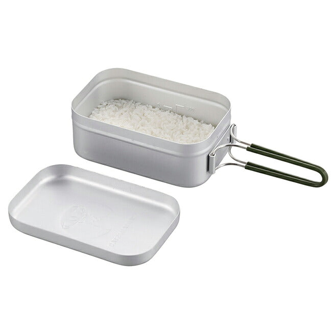オールアルマイト加工で、熱伝導率の高いアルミ製飯盒 軽量、コンパクト。食器やランチボックスとしても便利。 折りたたみ可能で、安定したハンドル構造。 本体内側にはお米と水の分量を量るのに便利な目盛り付き。 コンパクトストーブ・小型ガスバーナーで、ご飯ができます。 容量(約)1.0L 重量(約)185g 材質(品質) 本体・金具・リベット:アルミニウム(表面加工:アルマイト)(底の厚さ0.8mm) 取っ手:ステンレス鋼・シリコーンゴム |