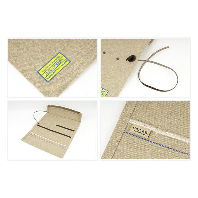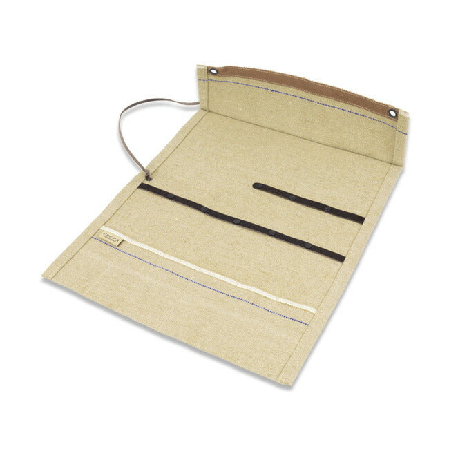 カトラリーや、ナイフなどを収納するのに適しているケースです。 素材:麻100% 牛革 |