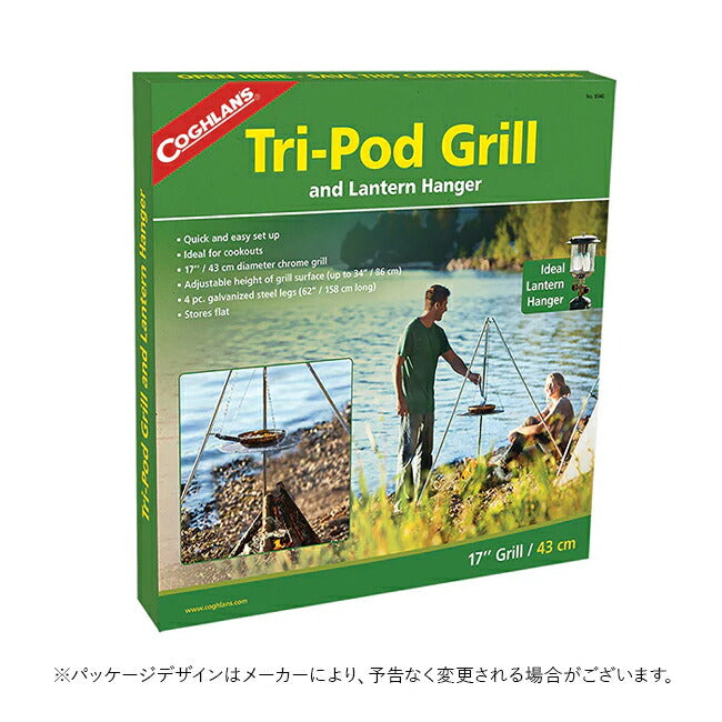 COGHLANS コフラン トライポッドグリル #9340は焚き火用のトライポッドはもちろん、ランタンハンガーにもなるトライポッドです。 グリル面の高さは86cmまで調整でき、ショックコード付きの脚は折りたためます。 ■重量:2.6kg ■素材:スチール ■耐荷重:15kg |