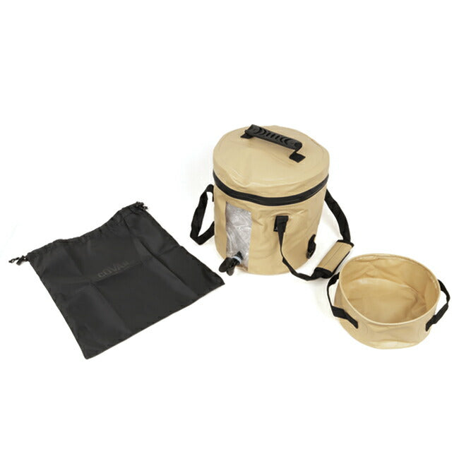 10Lと大容量なのにコンパクト!たっぷり使えて畳める『コバーン ソフトジャグ』 かさばるジャグを小さく、さくっと運びたい、でもたっぷり使いたい。 そんな想いを叶えるぺたんこジャグができました。 厚さ5cmでペタンコになる上に、たっぷり使える容量10L。 キャンプサイトを濡らさずテントの中や屋内で使える水受けバケツ付き。 本体はコックを取り外せて丸洗い可能、 使用後は逆さに吊るして乾燥OKなのでお手入れ簡単。 防災など、もしもの備えにも便利。 収納袋に入れて持ち運べます。 【満水容量】10L 【材料の種類】 本体:PVC、ポリプロピレン 蛇口:ポリプロピレン 水受バケツ:PVC、ポリプロピレン・ワイヤー 収納袋:ポリエステル、ポリプロピレン 【セット内容】本体、バケツ、収納袋 |