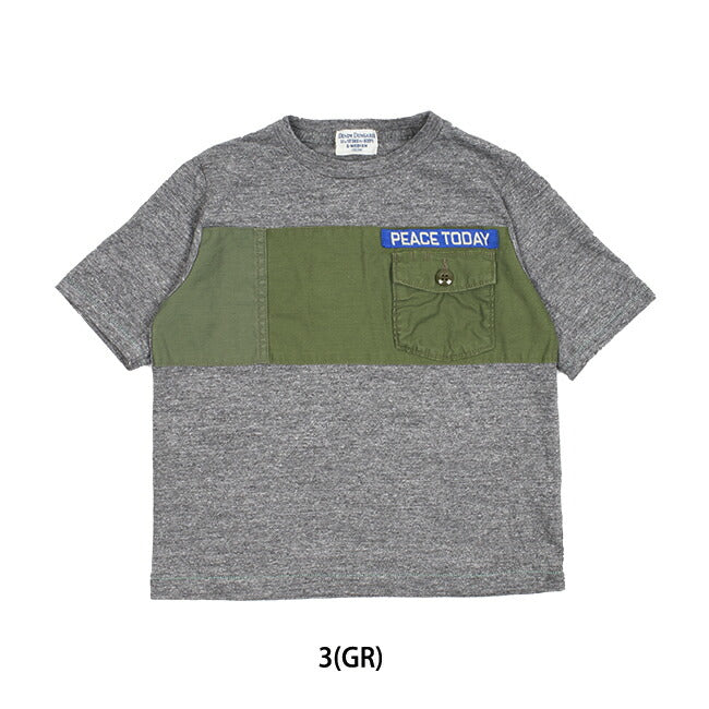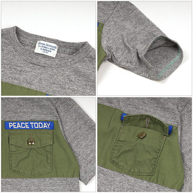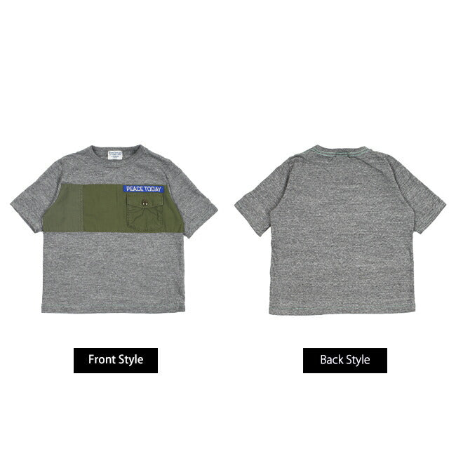 天竺素材を使用したリメイク半袖Tシャツ。 シンプルな丸首のTシャツに、US ARMYのシャツを胸につけてリメイクしたとゆうストーリーのアイテム。 肩落ちするゆったりしたシルエットで、リラックスして着用できる。 素材:綿100% |