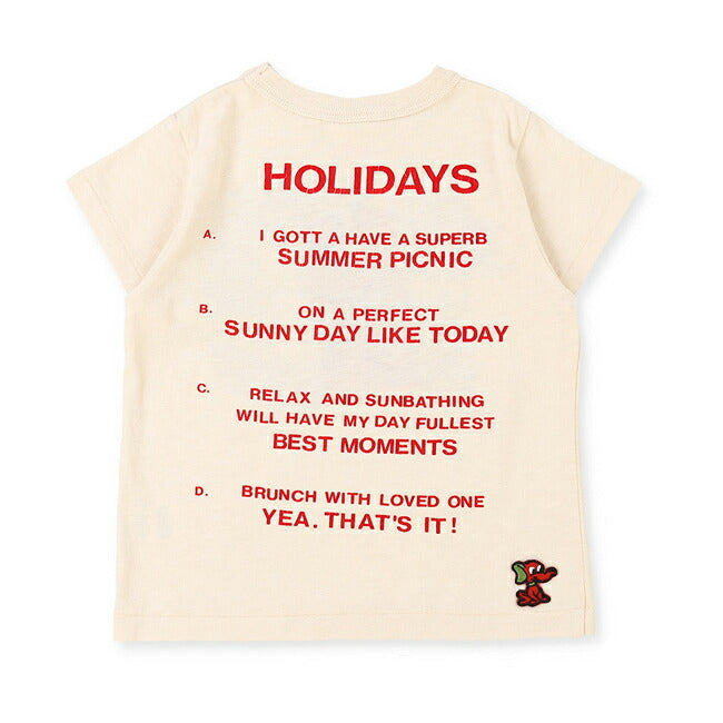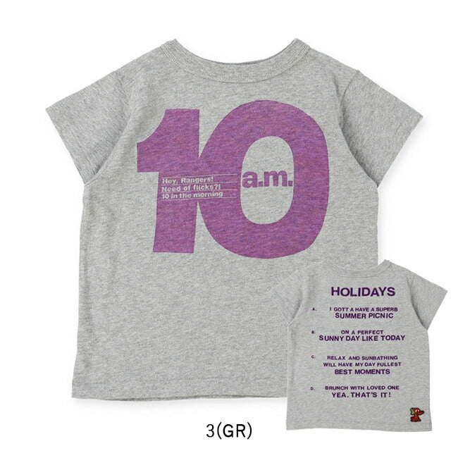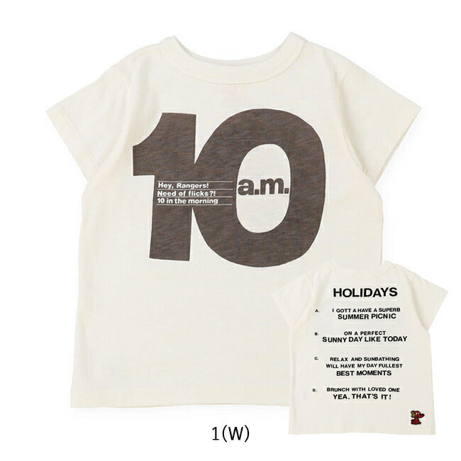 前にam10と大きくプリントされたTシャツ。 バックプリントには休日の午前10時を楽しむ方法4カ条が書かれています。 その横にいる、ちょこんとしたワンちゃんの可愛らしいワッペンがポイント。 【素材】 綿100% |