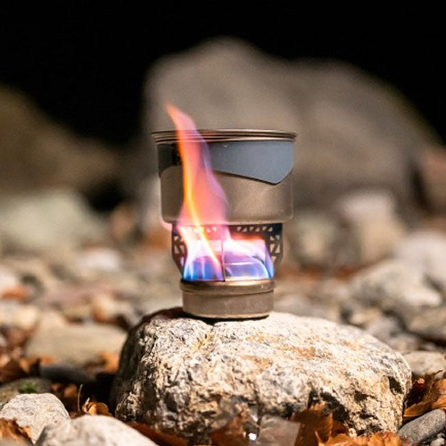 燃焼効率・安定感・軽さ・収納性・多用途性を高次元で融合したチタン製ゴトク 「Ti 400FD Cup」「Ti 400 NH」の中に「Tiアルコールストーブ」と一緒にフラットに収納可能 固形燃料・ジェル燃料のゴトクとしても単体で使用可能 【質量】 13g 【素材】 純チタン(国内製造) |