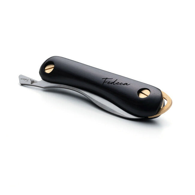 手のひらサイズでクッカーに収まる。 『折り畳める包丁』がコンセプトのアウトドア料理専用ナイフ。 クラウドファンディングで800万円以上の支援を集めた折畳式料理ナイフの弟分。 山やソロキャンプに連れていきたくなるコンパクトナイフ。 素材に黒の積層強化木を使用したブラックシリーズ。 天然の木材の単板に樹脂を含浸し重ね合わせ、高温高圧で圧縮し接着することで高い強度を持たせています。 湿気に強く高い撥水性を持つ一方、質感が良く、手になじみやすい特徴を持っています。 【特徴】 小さくても切りやすい形状 メンテナンスしやすい構造 日本の職人が仕上げた『最高の切れ味』 【重量】 約49g 【素材】 刃:両刃 3層の割込み(芯材/安来鋼銀紙三号・外層/ステンレス) 柄:積層強化木 ネジ:真鍮ネジ 付属品:板ドライバー※ナイフ刃物類の販売に関して※ ●ナイフ・刃物類は18歳未満の方へは販売しておりません。 ●刃渡り60mm以上のナイフを、正当な理由なく携帯することは法律によって禁止されています。 ●販売は登山・キャンプなど正当な使用目的を有した方のみとさせていただきます。 (銃砲刀剣類所持等取締法第22条) |