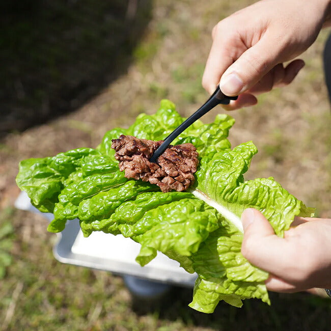 大人気のFEDECA CLEVER TONGに、メスティンに入る全長15cmのミニサイズが登場。 24cmある従来品から小さくなっても使い易さは変わらず、先端がテーブルにつかない衛生的なトングです。 【特徴】 1、メスティンサイズ ソロキャンパーやバイカーの皆様から多数要望のあった「メスティン」に収まるサイズのトング。 コンパクトサイズだけど、使い勝手は侮れません。 もちろん自宅でのBBQにも活躍します。 2、子供用に。 一方で、お子様用にミニサイズをリリースしてほしいとの声も沢山いただいていました。 サイズが小さいのでお子様でも扱いやすい。 ご家族で1人1本。 それぞれが好みのクレーバートングを揃えるのも楽しいものです。 3、ピンセットのように繊細な作業に。 手元から先端までのストロークが短いので、つかみやすさが向上。 ピンセットに近い感覚です。 薬味のとりわけ、お弁当への盛りつけ、ポテトチップスを食べるときなど、指のように使えます。 |