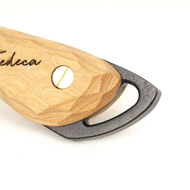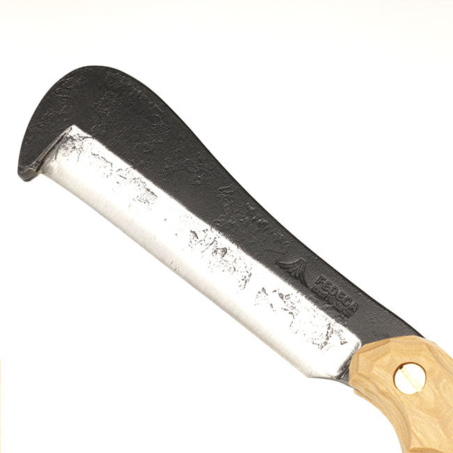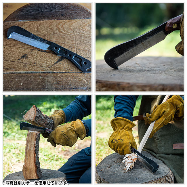 家族みんなで焚火を楽しめる、新発想のフルタング鉈(なた)。 キャンプの楽しみの一つといえば焚火(たきび)。 中でも、ナイフで薪(まき)を小さく割るバトニングから、それを表面を羽の形のように薄く削り重ねて火をつけるフェザースティックまでを、ナイフ一本で行うことが焚火の醍醐味です。 【こだわりのポイント5つ】 1、先端の突起で、刃が欠けにくい。 先端に刃を保護する石突(いしづき)という突起を設けました。 石突があることで薪割り台に刃が刺さらずに済むのでスムーズな薪割りができます。 2、先端がとがっていなくて、怪我をしにくい。 鍛造バトニング鉈では先端が尖っておらず丸みを帯びているので、怪我をするリスクが少ないのも安心です。 3、6mmの極厚鍛造ブレードで気持ちよく割れる。 厚みをもたせることで、薄い刃に比べ、薪を左右に押し広げやすいので、軽い力で薪を割ることができます。 更に、刃の断面は外側にハマグリのようにすこし丸みを帯びた「ハマグリ刃」になっており、強度が高く刃こぼれしにくい。 木を割る力が強いです。 4、折れる心配がない、頑丈なフルタング構造 刃先からハンドル部分まで鋼が入ったフルタング構造なら、おもいっきり叩いても大丈夫! 折れる心配が少なくとても堅牢、安心して使えます。 素材には、硬く靭性の高いシリコンマンガン鋼を使用。 耐衝撃性の求められる耕運機の爪や、自動車の板バネなどに使用されている特殊鋼材。 5、絶妙な重心バランスで気持ちよく削れる。 全体の重心を中心部にとることで、刃先の適度な重みを使って、少ない力でスーッと木を削ることができ、またハンドル側に適度な重みがあるので、ヘッドコントロールもしやすいので、繊細なフェザーを作ることを可能にしました。 【素材】 刃:シリコンマンガン鋼 ネジ:真鍮 ※ナイフ刃物類の販売に関して※ ●ナイフ・刃物類は18歳未満の方へは販売しておりません。 ●刃渡り60mm以上のナイフを、正当な理由なく携帯することは法律によって禁止されています。 ●販売は登山・キャンプなど正当な使用目的を有した方のみとさせていただきます。 (銃砲刀剣類所持等取締法第22条) |