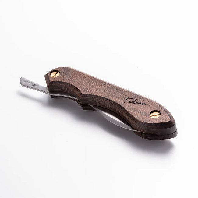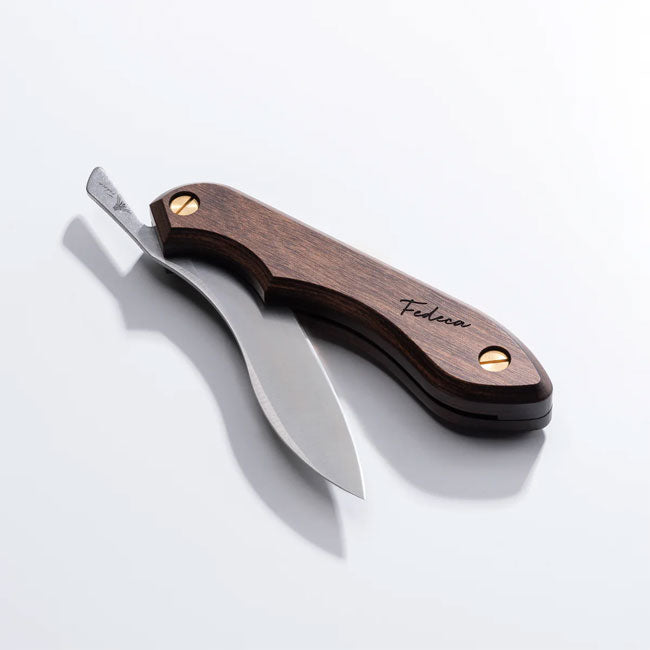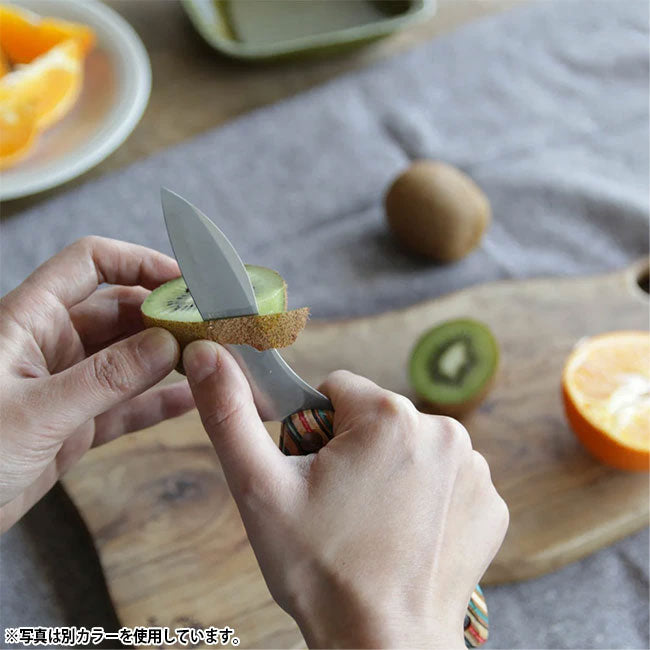 「折り畳める包丁」がコンセプトのキャンプ料理が楽しくなるナイフ。 【Point1:ナイフなのに刻みやみじん切りができる】 ナイフの強みは万能性にあります。 刃幅が狭いので、バターナイフとして、 ステーキナイフとして食卓のちょっとした作業や、木を削ったり、紙を切ったりといった作業などマルチに使えます。 また折りたためば携帯性に優れているのもその大きな利点。 一方で、包丁のように顎が無く、引切りしか出来ないため、本格的な調理は包丁に分があります。 そこで私たちはナイフをカーブ形状にすることで、包丁に近い使用感を実現しました。 押切りしても人差し指が当たらず、カットしやすい。 そして持ち手が切断部よりも上にくるので力が入れやすく、刻みやみじん切りも難なくこなせます。 アウトドアに限らず、食卓でのちょっとした作業にも。 折りたためて安全なので、ご家庭でも重宝します。 【Point2:抜群の携帯性】 特にキャンプでは、道具はなるべく少なく、こだわった物を持ちたいもの。 そんな皆様に、刃を折りたたんでコンパクトに、かつ安全に持ち運ぶことができる、このナイフがおすすめです。 別売りの専用ケースに入れれば、もっとスマートに。 【Point3:お手入れが簡単】 ナイフには珍しく、包丁と同じ刃付け角度を採用しているので、市販の包丁用シャープナーで手軽に切れ味が復活します。 もちろん、砥石で研ぐこともできます。 また、キットをルーツとした、誰でも簡単に組立できるシンプル構造のため、ネジを外して分解するだけで内部の掃除も簡単にできます。 さらにドライバー1つで、刀の開閉調整を行うことが可能です。 【重量】 84g 【素材】 刃:両刃 3層の割込み(芯材/安来鋼銀紙三号、外層/ステンレス) 柄:積層強化木 ネジ:真鍮 ※ナイフ刃物類の販売に関して※ ●ナイフ・刃物類は18歳未満の方へは販売しておりません。 ●刃渡り60mm以上のナイフを、正当な理由なく携帯することは法律によって禁止されています。 ●販売は登山・キャンプなど正当な使用目的を有した方のみとさせていただきます。 (銃砲刀剣類所持等取締法第22条) |