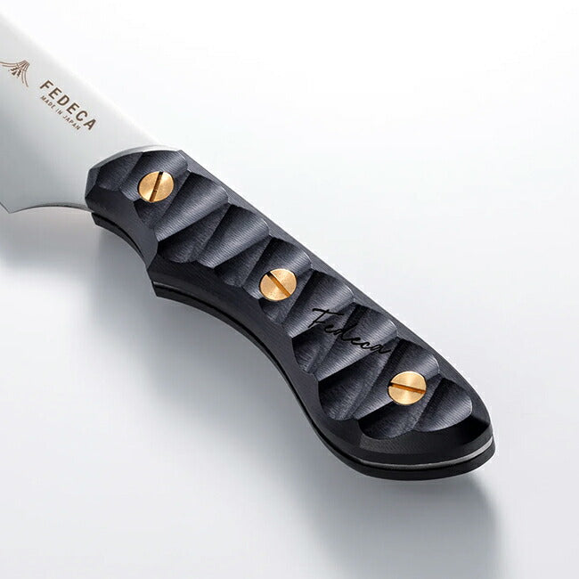 折畳式料理ナイフをお使いのアウトドアラバーな皆様から「もう少し刃渡りの長いものも欲しい!」という声を多く頂いておりました。 特に料理にこだわりある皆様にとっては普段使いできる包丁を、スタイリッシュに持ち出すことができたら嬉しいですよね。 そんな皆様にご提案したいのが、FEDECA「三徳包丁」。 スタイリッシュに持ち運ぶことを軸に置いたプロ仕様の家外共用の包丁です。 【Point1:抜群の切れ味でメンテナンス性もGOOD!アフターフォローも充実】 ブレードの鋼材には日本製の高機能ステンレスAUS8を採用。 医療用のメスやナイフなどにも用いられ、錆などに強い耐蝕性をもつ非常に研ぎやすく、扱いやすい鋼材です。 一般のステンレス鋼に比べ、切れ味は長続きするのが特徴です。 【Point2:お気に入りのトングやナイフとコーディネートを楽しめる】 ハンドルには水に強い積層強化木を採用。 【刃のお手入れ】 刃を長く使っていただくには、錆対策が必須です。 包丁にはステンレス鋼を使用しており、炭素鋼に比べ錆びにくさはありますが、全く錆びないわけではありません。 使用後は水分をしっかり拭き取り、椿油などの防錆油を施して頂けると長く使っていただくことができます。 【ハンドルのお手入れ】 出荷時、ハンドルの木材には、FEDECA特製カルナバワックスを塗布しております。 このカルナバワックスに使用される「カルナバ蝋」は植物性の蝋の中で硬度・融点(溶け出す温度)ともに最も高く、自動車用ワックスにも使用されるほどの強度がある天然成分100%のワックスです。 使っていて表面が乾いてきたり、撥水効果が薄れてきたなと感じた時、こちらのワックスや市販の木製品用のワックスを塗布していただければまた元の艶を取り戻すことができます。 塗り重ねれば重ねるほどに、保護効果は高くなりますのでご使用のたびに塗っていただいても大丈夫です。 ※ハンドルを固定しているネジには緩み止め剤を使用しております。 ※ネジを無理に回すとネジの溝がつぶれる恐れがあるため、分解は行わないでください。 【素材】 刃:AUS8 柄:積層強化木 ネジ:真鍮 ※ナイフ刃物類の販売に関して※ ●ナイフ・刃物類は18歳未満の方へは販売しておりません。 ●刃渡り60mm以上のナイフを、正当な理由なく携帯することは法律によって禁止されています。 ●販売は登山・キャンプなど正当な使用目的を有した方のみとさせていただきます。 (銃砲刀剣類所持等取締法第22条) |