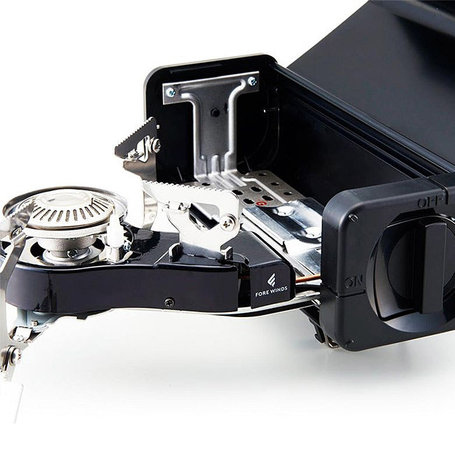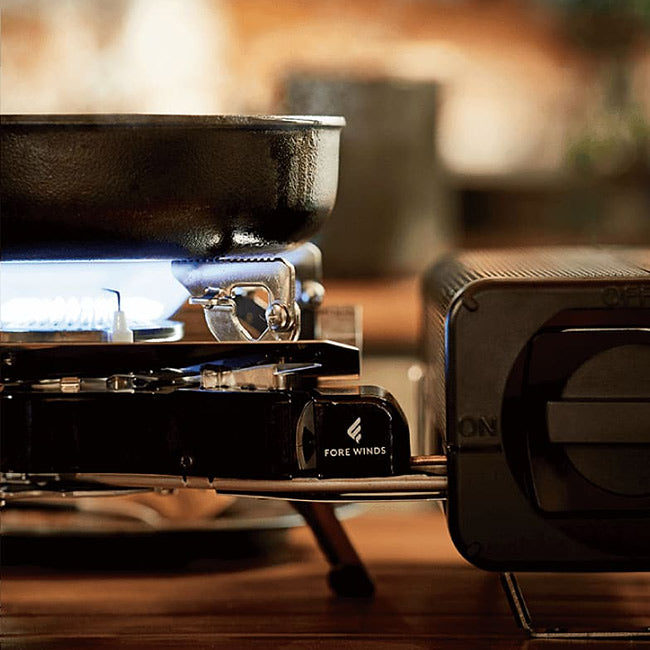 収納時はカセットこんろと分からないデザインですが、誰でも簡単に組立てられるように設計。 美しき輝くステンレス製のヒートシールドは輻射熱によるテーブルへのダメージを抑えます。 ハンドル付で持ち運びも簡単です。 最大発熱量:2.2Kw(1,900kcal/h) 本体重量:約1,600g 連続燃焼時間:約120分(カセットガス FORE WINDSノルマル使用時) ※気温20-25℃のとき、強火連続燃焼にてカセットガス1本を使い切るまでの実測値 使用できる鍋の大きさ:目安としてφ24cm以下まで 点火方式:圧電点火方式 使用ガス:カセットガス FORE WINDSノルマル、イワタニカセットガス、イワタニカセットガス パワーゴールド (カセットガスとノルマルガス両方使えます) 注意 ※当商品をテント内、車内では絶対に使用しないでください ※ヒートシールド、ラバーキャップ付属 カセットガス別売 |