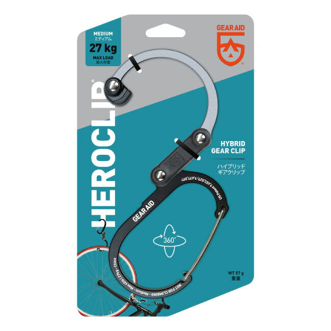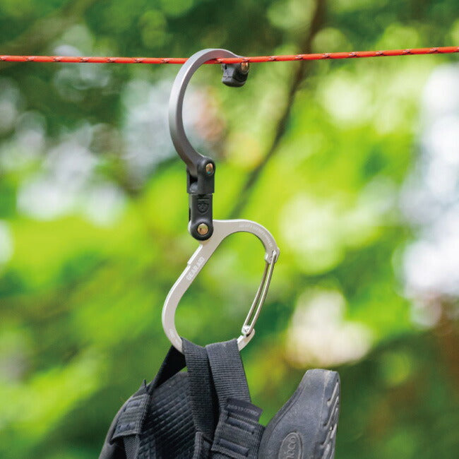 フックを開けばジョイント部が360度回転し、S字フックや回転フックに早変わり。 材質は航空機にも使われる等質のアルミニウム合金製で、優れた耐久性を持ちます。 フックの先端にはグリップ性の高い素材を使用し、荷物を掛けやすい仕様です。 バッグハンガーなどに便利なミディアムサイズ。 【素材】 本体:アルミニウム合金、硬化プラスチック ゲート・ピン:スチール 【重量】 約57g 【耐荷重】 27kg(静止荷重) |