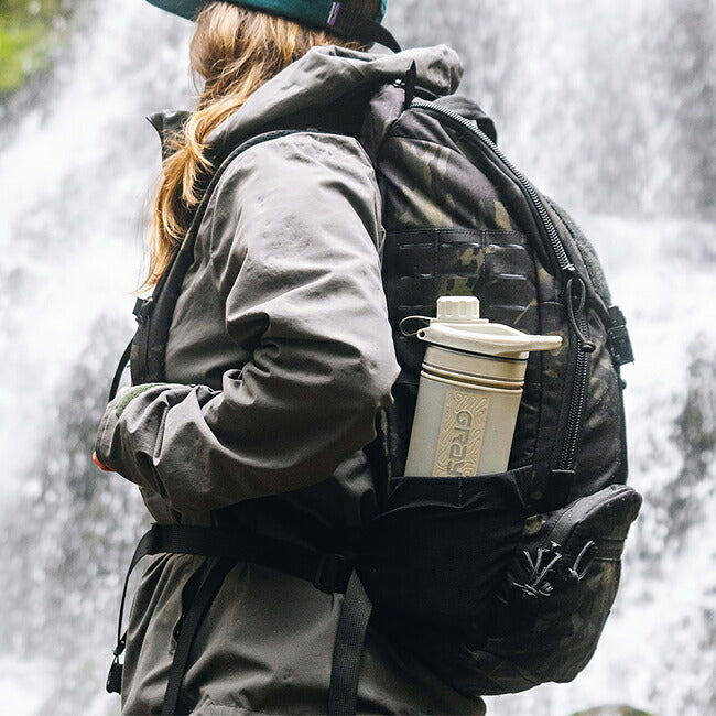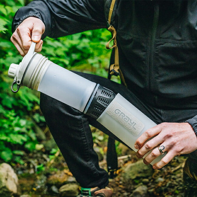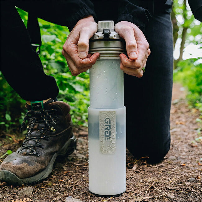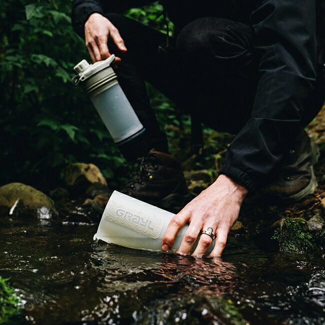 安全な飲料水を簡単に素早く確保できるプレス式浄水ボトル。 大きな浄水カートリッジを搭載し、高いろ過効率と操作性を両立。 キャンプなどグループでの使用にも便利な容量です。 GRAYL独自の浄水・ろ過テクノロジーにより、わずか8秒で約710mLの水を浄化可能。 フィルター内の電気吸着体や超粉末状活性炭が、細菌やエキノコックスなどの寄生虫はもちろん、通常のフィルターでは除去が難しいウイルスまで99.9%除去します(グレイル社提供データによる除去率)。 浄化した水はそのまま飲用可能で、アウトドアをはじめ、海外旅行や災害時などさまざまなシーンで活用できます。 インナーボトルをアウターボトルに押し込むだけで浄水できるため、ろ過速度を生かして短時間に多くの水を確保できるのも特長です。 浄水カートリッジは繰り返し使用可能で、取り替えることもできます。 逆流を防ぐ逆止弁付きバルブ(ワンウェイバルブ)を内蔵しているため、浄水した水が入ったボトルに粉末飲料などを溶かしたまま携行できます。 【素材】 アウターボトル・インナープレス・キャップ:ポリプロピレン カートリッジ:ABS樹脂 パッキン・ワンウェイバルブ:シリコーンゴム インナープレス外側ゴム:熱可塑性エラストマー 【重量】 450g 【内容量】 710mL 【耐熱温度】 アウターボトル:110℃ インナープレス:120℃ キャップ:140℃ カートリッジ(樹脂部分):100℃ ※50℃以上の水を使用しないでください。 フィルター性能を損傷させる恐れがあります。 【ろ過流量】 710mL/8秒(5L/分) 【カートリッジ交換目安】 350回(250L) ※ろ過時間が25秒以上になったらカートリッジの交換時期です。 ※耐用年数は、未開封状態で約10年間、初回使用時から約3年間 【有害物質除去率】 ○ウイルス除去率 99.99%(ロタウイルス、ノロウイルス、A型肝炎ウイルスなど) ○バクテリア除去率 99.9999%(大腸菌、サルモネラ菌、コレラ菌、赤痢菌など) ○原虫除去率 99.9%(エキノコックス、ジアルジア、クリプトスポリジウムなど) ※除去率はグレイル社提供データによる。 ※除去率や除去の表現は、国際的な水質試験機関であるNSF(National Sanitation Foundation)による、味・におい・塩素・濁り・有害物質などの除去に関する規格No.42、No.53に準拠したテストを受け、そのデータをもとに、グレイル社が理論的に適用可能な病原体や物質を推定したものです。 すべての個別の病原体や物質に対して試験を行った結果に基づくものではなく、いかなる健康上の安全を保証するものではありません。 ※重金属・微粒子(マイクロプラスチックなど)・化学物質(PFASなど)もろ過により軽減可能です。 |
