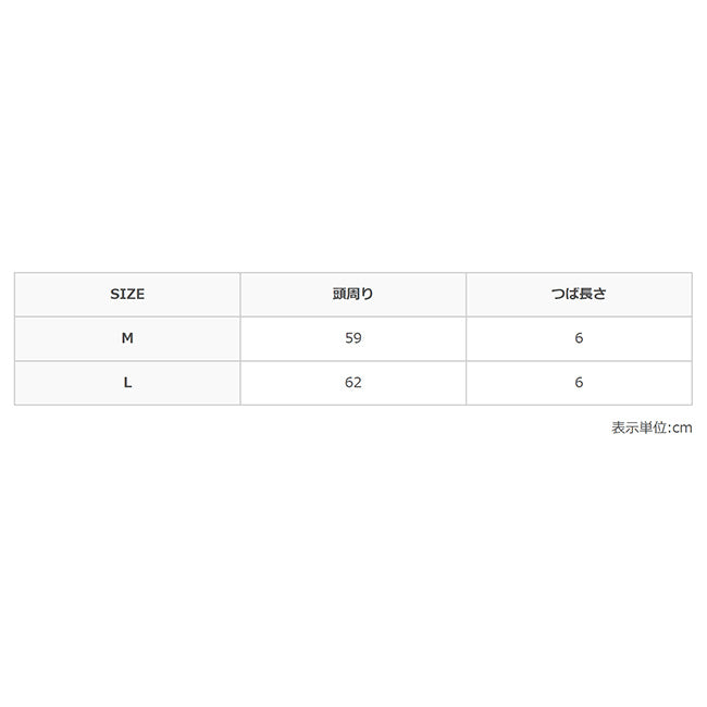 サイズ | M:頭周り60cm つば長さ6cm L:頭周り62cm つば長さ6cm ※メーカーサイズ参照 |